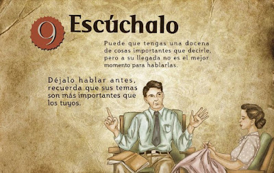 Hoy quiero compartir con ustedes este manual con 11 reglas para mantener a tu marido feliz, que me llego por mail, el cual encontré muy divertido y no dejo de sorprenderme lo machista que es. No se si es real o falso, según estuve revisando en google, este folleto de 1953, se entregaba en España a las mujeres que hacían el Servicio Social en la Sección Femenina.